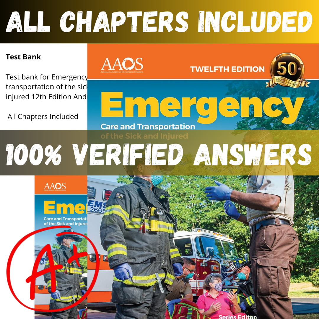The Test Bank for Test bank for Emergency Care and transportation of the sick and injured 12th Edition Andrew includes multiple-choice, true/false, matching, and application-style questions that mirror the format of professional nursing exams. Whether you’re preparing for NCLEX-RN, NCLEX-PN, course exams, or clinical evaluations, this resource gives you the practice you need to perform at your best.